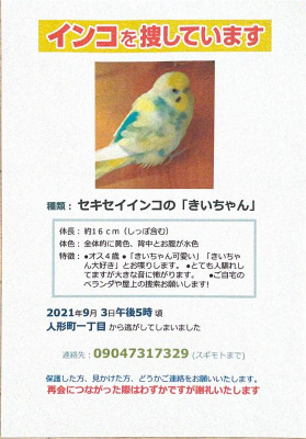 その他情報:どんな些細な情報でもお願い致します。見つけて下さった方には謝礼致します!