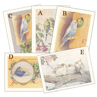 古い年代の絵柄をモチーフにしたセキセイインコのグリーティングカードが入荷しました。
