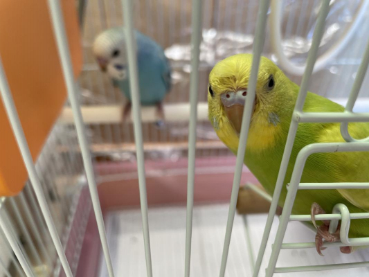 セキセイインコなんですが うちの子はオスメスどっちか わかるかたいませんか?? 私的には黄色い子はメスで 青い子はオスだと思ってるんですが どうでしょうか??