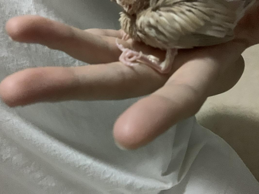 まだそのうが見え、羽は揃っていません。 足のねじれです。