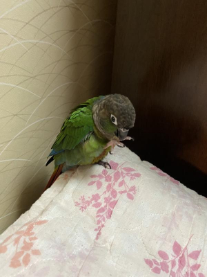 特徴:怖がり、慣れると肩や手に乗り自分の名前やおかえりと話します。