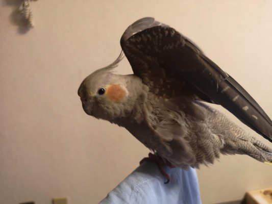 人の肩や頭に乗るのが好きで手にも乗 ってきますが、怖がりなので捕まえられるのを嫌がります。大きな音にもビックリします。