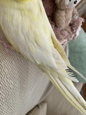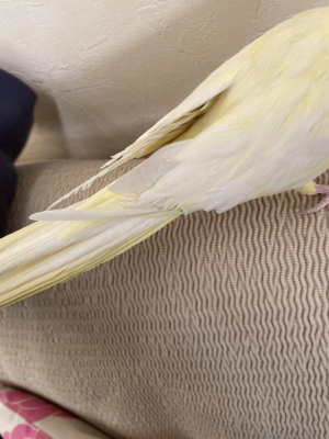 最初は尾羽だったのですが、太ももや羽の内側(横腹?)、背中などを時々抜くらしく、病院に行くたびに相談しています。