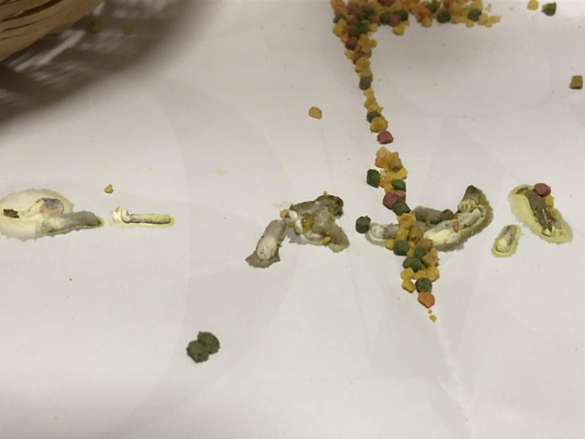 ペレットだと着色料(害の無い)により糞に色が付いたりします。