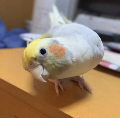 色:鶏冠が黄色 頬がオレンジ 全体はクリーム色 顔がグレー
