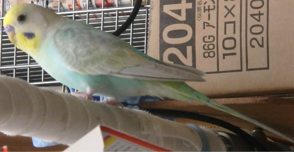 特徴:薄い青地+白 おでことほほ、羽に黄色い部分あります。