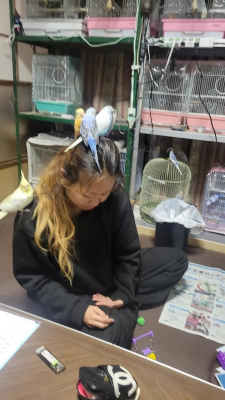 毎日放鳥していると 肩や頭の上に乗って、いのばた会議してます♡