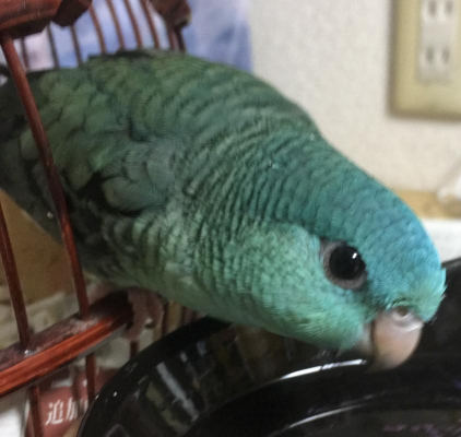 特徴:尾が短い、目が大きい、全身綺麗なターコイズブルーに黒いサザナミ模様が薄く入る、トロいです