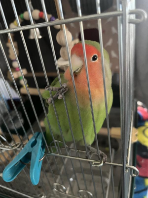 色:頭が赤く、体が緑、尾が水色の差し色。