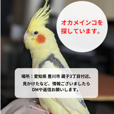 【迷子】愛知県豊川市 オカメインコを探しています。