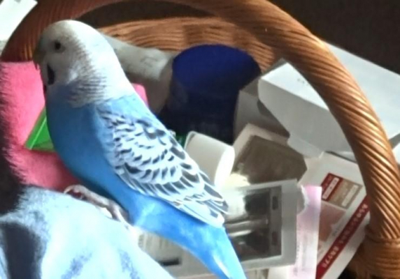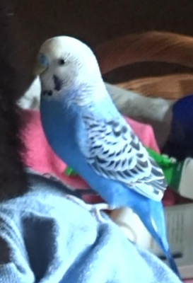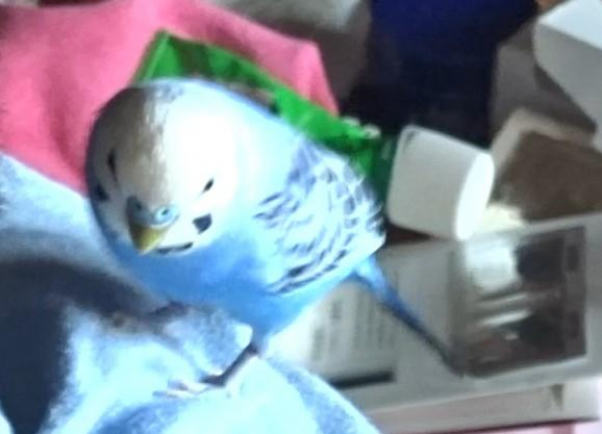 特徴:オス 鼻が青い 手乗り 羽は切っていません 「ピピ」などおしゃべりします
