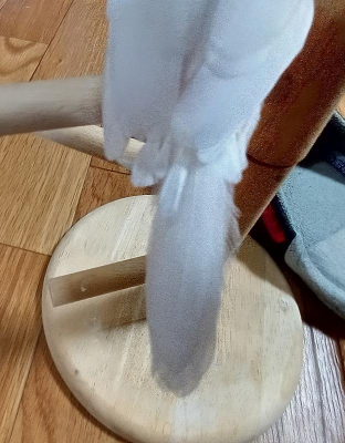 肩にのるもののすぐ籠に戻りじっとしています。換羽期では尾脂腺のあたりも