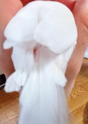 文鳥の尾脂腺のあたりが赤く見えます
