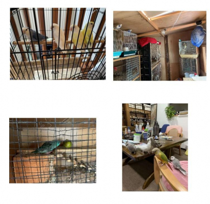 セキセイインコ、さざなみインコ、小桜インコ、オカメインコ、等など。15匹ぐらい。