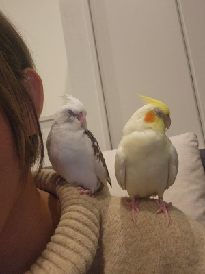 また、2羽とも人懐っこい子で手や肩、頭に乗ったりします。