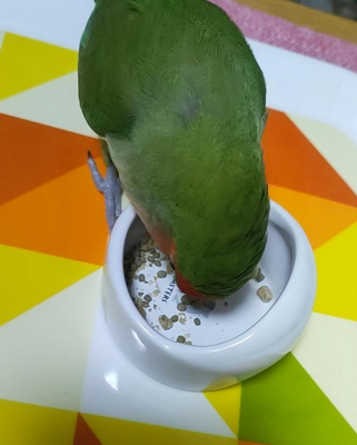 はじめは全然食べませんでしたが今では自分でペレットとシードを食べ分けるようになりました。