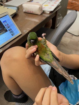人慣れしていますが、大きな音にはびっくりして飛びます。