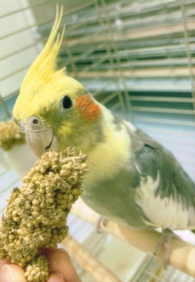 特徴:頬に丸くオレンジ色がある、高く強い声でピーピーと鳴く