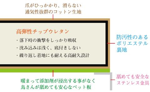 マットの厚さを鳥さんの体重別にし、落下時の衝撃をしっかり吸収。