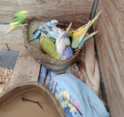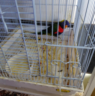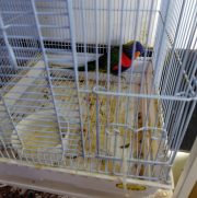 同じ部屋に何週間か前からゴシキセイガイインコとキスジインコのカゴが設置、そのまた次の週にはヒヨコが放し飼いに。