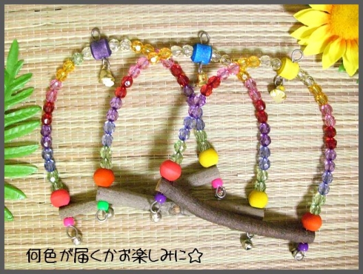 主な材料は海外(アメリカ・オーストラリア)の鳥専門店のものを使用、金属パーツはステンレス製にするなど、鉛中毒にも考慮して製作しています。