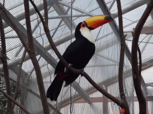 オオハシさんはお腹一杯になってしまって上の枝に止まってて降りて来てくれなかったです。