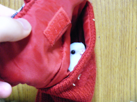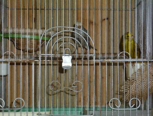 あっちゅんはこれはまずいと思うときは、籠の中に逃げ込み、籠の止まり木の中央で知らぬ顔です。調子に乗っているときは、毛を逆立てて挑戦してきます。