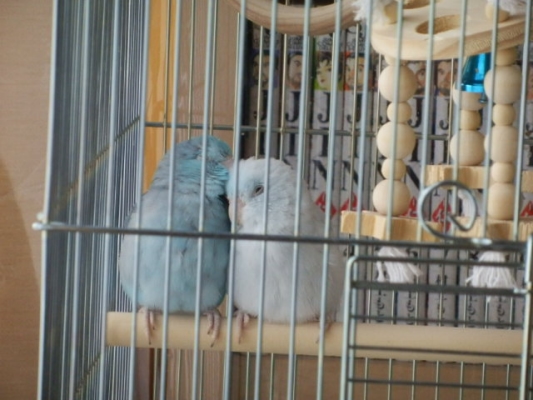 >ペア同士は仲がいいですが、やはり4羽の同時放鳥は無理です。特にすーvs雪のマメ女対決は怖ろしいです。