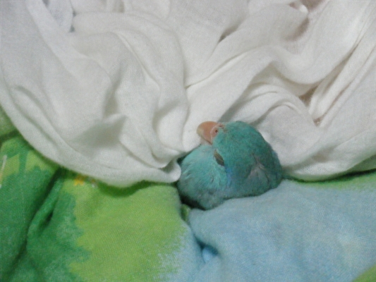 この雛の親は、雄がグリーン(AW×ルチノー)で雌がグリーンファロー(ブルー×グリーンファロー)です。