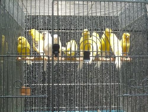 今回、6羽の雛が誕生しましたが、2羽がアメリカンホワイトで4羽がアメリカンイエローです。もう少し経てば残りの3羽も巣箱から出てくると思います。そしたら、今までの雛13羽を籠に入れて写真を撮ってアップします。