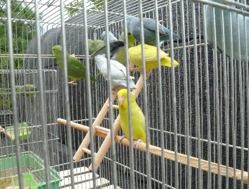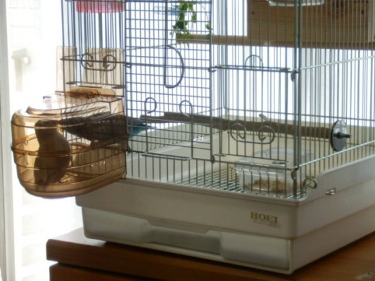 鳥かごは、繁殖、追い込み両方ともHOEIの465型を使用しています。これ以上増えてきますと、手造りの900×450×600の追い込みを設置します。