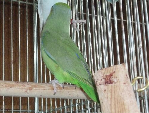 4羽の追い込み飼育で、きょうのエサやりの時に止まり木に血液が多数付着していました。昨日はなんとも無かったのですが、治療して当分の間1羽飼育です。