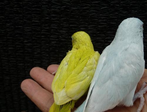今回は、両ペアとも6匹誕生し3羽、2羽合計5羽誘拐しました。先に孵ったのとあとからでは、大きさがかなり違いますがマメの場合はちゃんと育て上げます。カナリヤは大きさが違いすぎると確率的には小さいのが育つのは難しいので、卵を擬卵と入れ替えて4〜5個生んでから戻します。