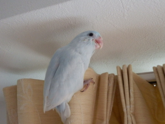 1羽でいるときはそんなに飛ばないんですが、くぅちゃん達が飛ぶとつられて飛び立ちます。昨日は夜、段ボールの中で何回も羽ばたいて、自主トレもしていたようです。