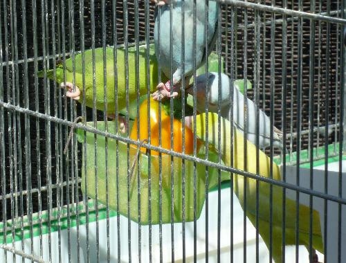 もうちょっと早く別居させればよかったのですが、この雌は前の雄も同じように雄の後頭部の毛を抜いてしまいました。でも、雛を巣立たせたので大丈夫かと思い同居を長引かせてしまいました。おとなしいブルーの雌がいるのですが、相性が合うか試してみます。