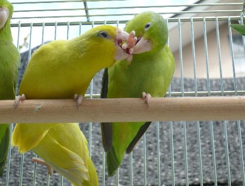 コザクラ同士は仲良しですよ、グリーンのほうは未だに雌雄不明ですが