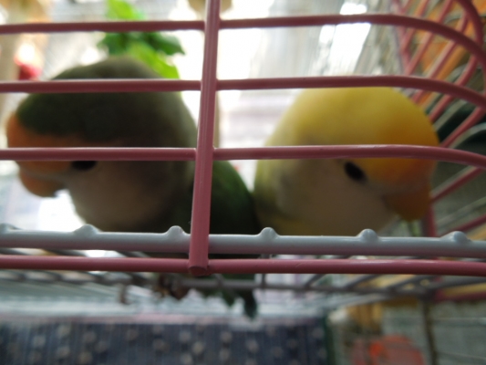 >コザクラ同士は仲良しですよ、グリーンのほうは未だに雌雄不明ですが