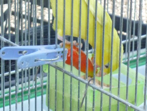>先日初めて巣立ったマメにピーマンを丸ごと入れました。鳥小屋がピーマンの匂いで凄かったです。ほんとに、いたずら好きな鳥達です。