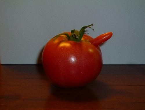 >PS.家庭菜園で採れたトマトに変わったのが出ました。