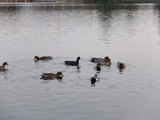 たまたま歩いていた公園の池で全身が黒く、嘴の上側が白い妙な色のカモがヒドリガモやオナガガモの軍にポツリと仲間入りしていたので、この日はカメラを携帯せずにいたため、後日リベンジ!