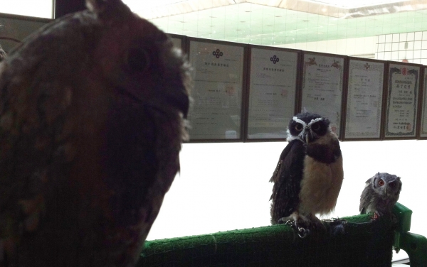 神戸花鳥園では、ベンガルワシミミズクが活躍しています。