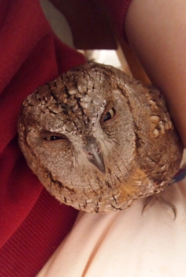 例のふくろうの飼い方の本の写真の中に、もんちゃんのように、ニンマリ顔の子がいましたよー