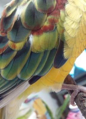 虹色インコといった感じで、雛の頃とは大分色が違います。