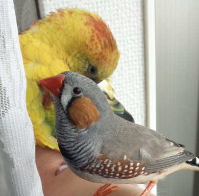 鳥の社会性・・うちはサンゴがまだお子ちゃまですが、生後三か月間はブリーダーさんのお宅で大勢の仲間と暮らしたから社会性はあるのでしょうかね?その後は文鳥のあかりに鍛えられ、少しやさぐれてしまいましたが(苦笑)。今、彼は優しく受け入れてくれるお友達を求めて、先日購入した羊毛オカメちゃんの傍によく行っています。