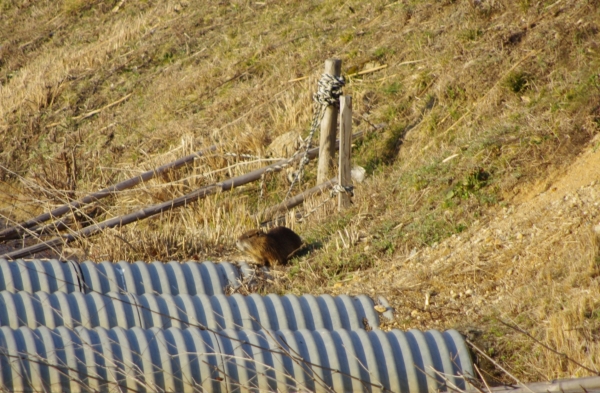 水辺では、時々野生化ヌートリアを見かけます。一瞬カピバラに見えます(゜_゜)