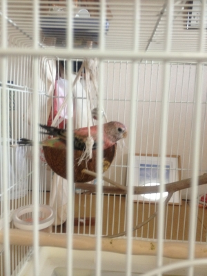そらもよさん、お久しぶりです。ココナッツブランコはあれ以来やはり乗りませんね〜。セキセイインコ用のブランコの方をとても上手く乗りこなしています。こちらの方がよっぽど窮屈に思えるのですが。ただセキセイさんの様に遊び好きではない様子で、必要で乗る(傍の粟穂を摘まみたい、ベットにしたい)みたいです(^v^)