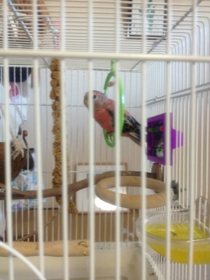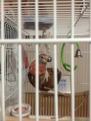 鳥の専門病院の楽しいのは色んな患鳥さんを見られる事。今日はルチノーオカメの女の子が来ていたのと、芽生ちゃんと同種のキンカチョウの男の子と女の子、お喋り上手のハルクインのセキセイさんと会えました。待合室で盛り上がっていたら「静かにして下さい」とご注意受けてしまいました。