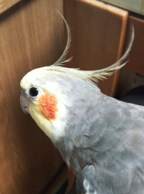オカメは換羽だと妖怪アンテナが立ちます。ほのぼの笑いを誘います。