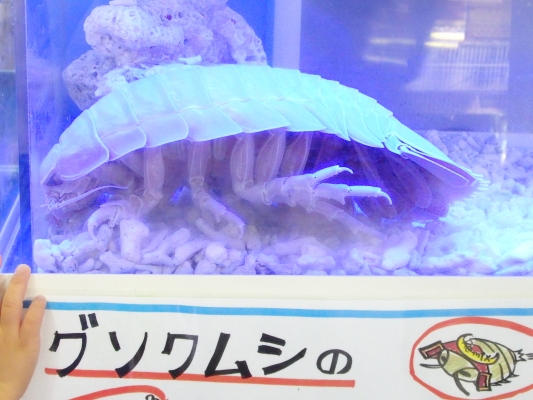 ダイオウグソクムシの水槽の横に、普通の?小ぶりのグソクムシがいる