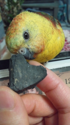 栄養素も吸着する恐れがあるので、放鳥時のみ齧らせてます。